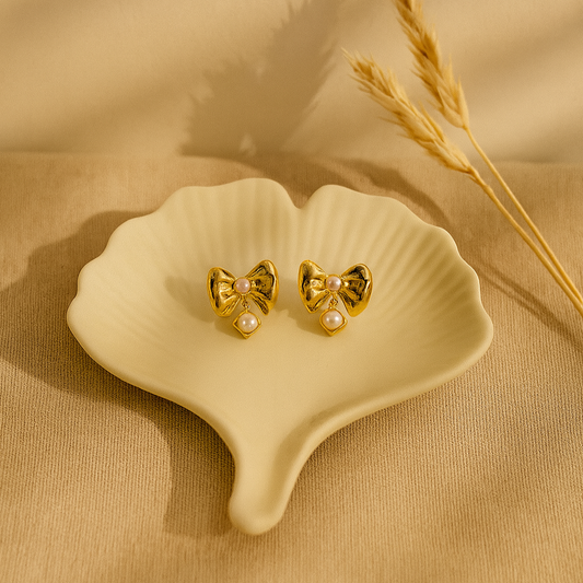 SAVE 50%Gold Bow Pearl Drop Earrings