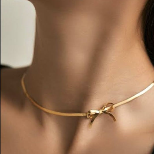 SAVE 50%Gold Ribbon Bow Pendant Necklace