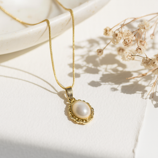 SAVE 44%Gold & Pearl Flower Pendant Necklace