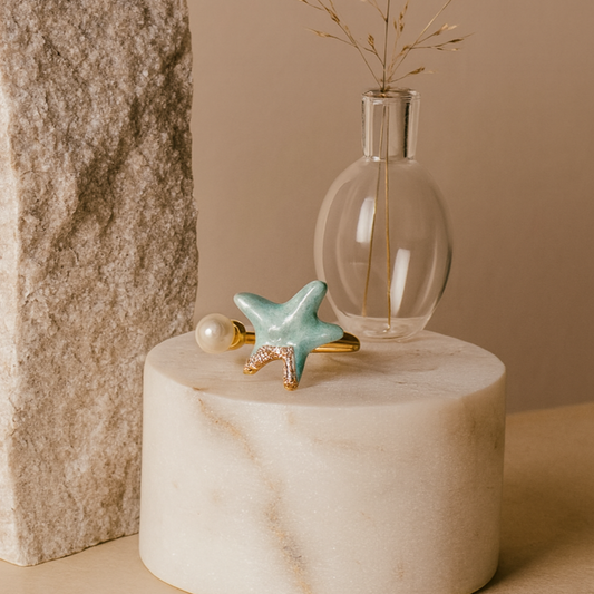 SAVE 50%Starfish & Pearl Adjustable Ring